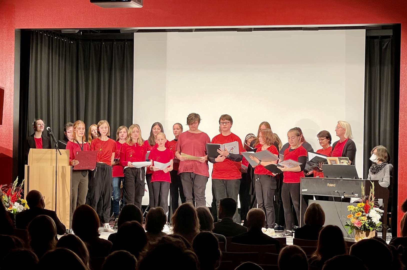Das vielfältige Programm bestach durch einen Wechsel aus musikalischen Darbietungen unseres Chores Wa-canto! (unter der Leitung von Frau Luft) sowie der Band-AG (unter Leitung von Herrn Käthe) und Redebeiträgen unserer Gäste. Zwischenzeitlichen Schwung brachte eine artistische Einlage von Schülerinnen mit so genannten LED-Pois.