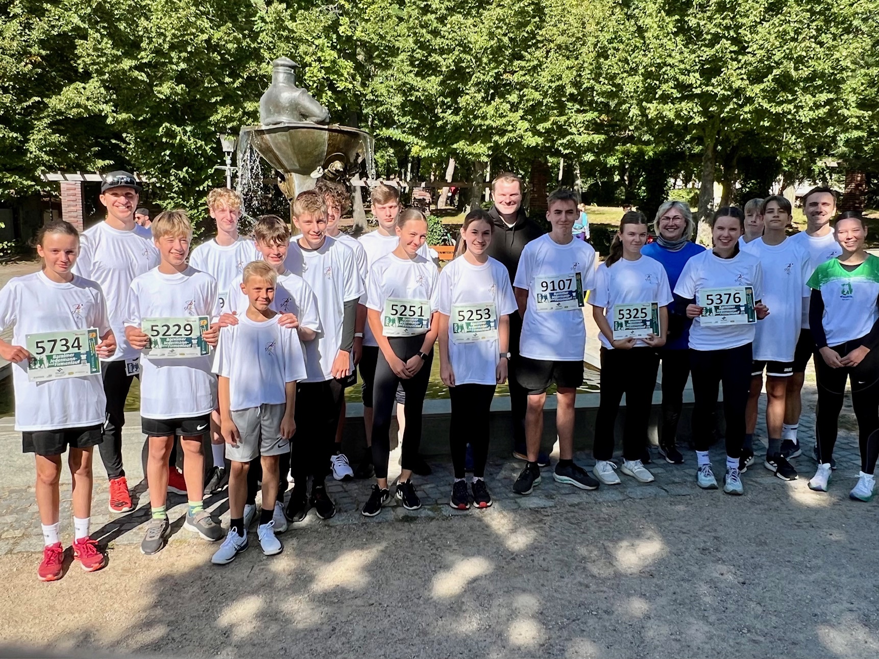 Am Samstag, den 14.09.24, nahm unser Gymnasium zum ersten Mal mit einem Team am Jedermannlauf „Wandlitz läuft“ teil. 21 Schülerinnen und Schüler und vier Lehrkräfte liefen für das Team „Gymnasium Wandlitz“. In der Distanz über 9 Kilometer erreichten wir bei dieser Premiere in der Teamwertung einen fantastischen dritten Platz. Der Förderverein spendierte den Schülerinnen und Schülern zum Start jeweils ein Schultrikot. Ein tolles gemeinsames Erlebnis für alle Beteiligten. Wir freuen uns auf den nächsten Lauf.